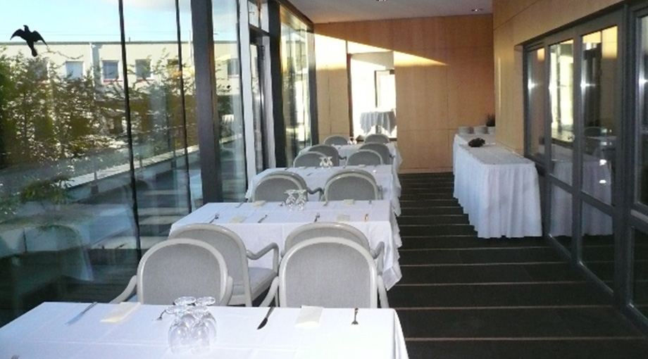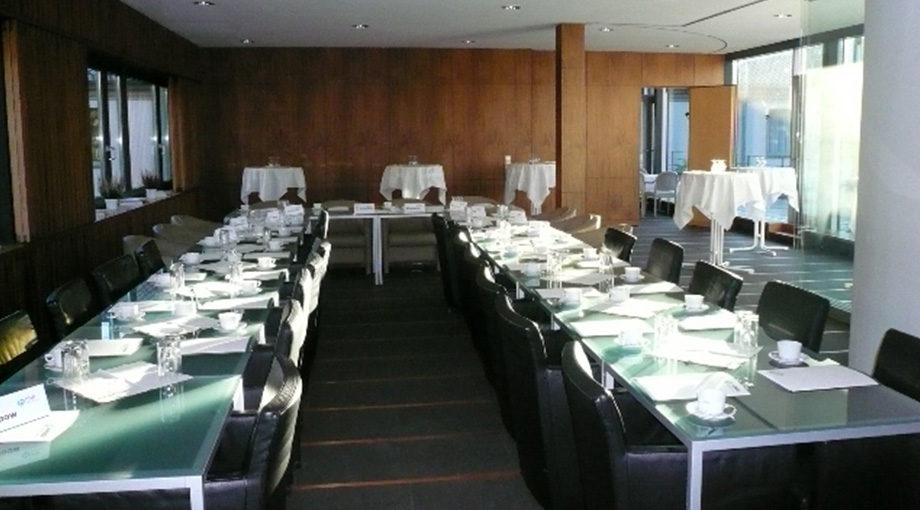 Mit einer Größe von 45 m² bietet der Raum für bis zu 16 Personen Platz. Er bietet sich für einen Mittagsimbiss mit kleinem Buffet an.
